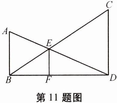 11. 如图,$ AD $,$ BC $ 相交于点 $ E $,$ AB // CD // EF $,点 $ B $,$ F $,$ D $ 在同一条直线上。已知 $ AB = 10 $,$ CD = 15 $。