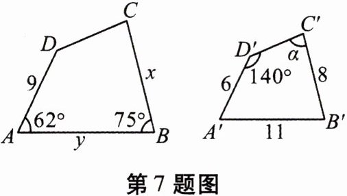 7. 如图,四边形 $ ABCD \sim $ 四边形 $ A'B'C'D' $.