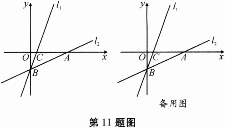 11. 如图,在平面直角坐标系中,直线$l_1:y= 3x-6与x轴交于点C$,与$y轴交于点B$。直线$l_2经过A$,$B$两点,点$A是x$轴正半轴上一点,且$OA= 6OC$。