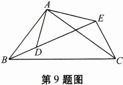 9. 如图,在$\triangle ABC和\triangle ADE$中,$\frac{AB}{AD}= \frac{BC}{DE}= \frac{AC}{AE}$,$B$,$D$,$E$三点在同一条直线上,求证:$\triangle ABD\backsim\triangle ACE$.