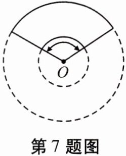 7. “黄金分割”在人类历史上有着重要的作用和影响,世界上许多著名的建筑和艺术品中都蕴涵着“黄金分割”. 下面我们就用黄金分割来设计一把富有美感的纸扇,如图,假设纸扇张开到最大时,扇形的面积与扇形所在圆的剩余部分面积的比值等于黄金比,请你来求一求纸扇张开的角度.(黄金比取$0.6$,扇形的面积公式$S= \frac{n\pi R^{2}}{360^{\circ}}$,$n$为扇形圆心角度数,$R$为扇形的半径)