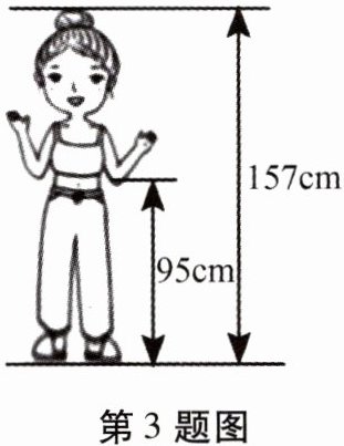 3. 当人体下半身长与身高的比值越接近$0.618$时,越给人一种美感. 如图,某女士身高$157cm$,下半身长为$95cm$,为尽可能达到美的效果,她应穿的高跟鞋的高度大约为(