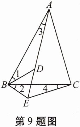 9. 如图,D为△ABC内一点,E为△ABC外一点,且∠ABC = ∠DBE,∠3 = ∠4.求证: