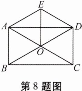 8. 如图,矩形 $ABCD$ 的对角线 $AC$,$BD$ 相交于点 $O$,$AE // BD$,$DE // AC$。求证:$OE$ 与 $AD$ 互相垂直平分。