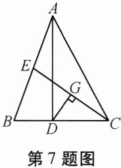 7. 如图,在 $\triangle ABC$ 中,$AD$ 是高,$CE$ 是中线,$DC = BE$,$DG \perp CE$ 于点 $G$。