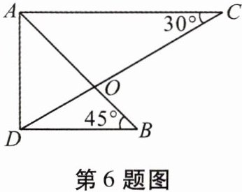 6. 将一副三角板按如图所示的方法叠放,则 $S_{\triangle AOC}:S_{\triangle DOB}= $______