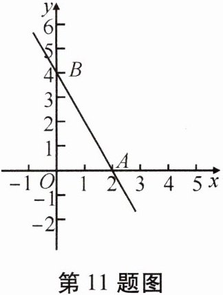 11. 如果两个一次函数$y = k_1x + b_1$和$y = k_2x + b_2$满足$k_1 = k_2,b_1 ≠ b_2,$那么称这两个一次函数为“平行一次函数”. 如图,已知函数y = -2x + 4的图象与x轴、y轴分别交于点A,B,一次函数y = kx + b与y = -2x + 4是“平行一次函数”.