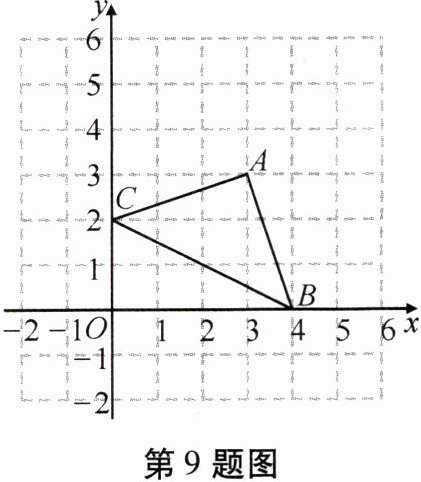9. 如图,在直角坐标系中,已知△ABC三个顶点的坐标分别为A(3,3),B(4,0),C(0,2).