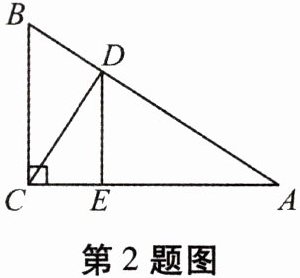 2. 如图,在 $ Rt \triangle ABC $ 中,$ CD $ 是斜边 $ AB $ 上的高,$ DE // BC $,则图中与 $ \triangle ABC $ 相似的三角形($ \triangle ABC $ 除外)共有(
