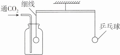 5. 如图,杠杆已调至平衡,向集气瓶内缓慢通入一定量的$CO_2$气体,稍后再倒入足量氢氧化钙溶液(液面不接触乒乓球)。下列说法不正确的是( )