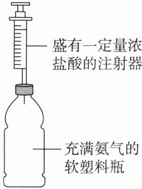 9. 某同学在开放性科学实践活动课中,利用如图所示装置,做了“空瓶生白烟”的化学小魔术。有下列说法:① ${NH_{4}Cl}$ 为白色固体;②该变化属于化学反应;③会观察到软塑料瓶变瘪的现象。其中正确的是( )