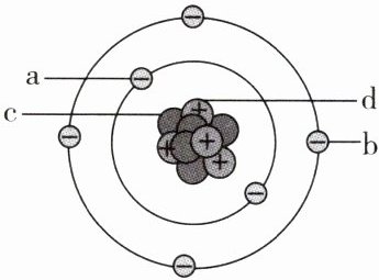 12. 如图为某原子结构模型的示意图,其中 a、b、c、d 是代表构成该原子的微观粒子。下列说法正确的是( )