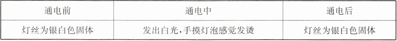 分析:通电前后,钨丝本身没有发生变化,灯泡通电发光、放热属于______变化。