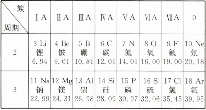 |3|11 Na钠22.99|12 Mg镁24.31|13 Al铝26.98|14 Si硅28.09|15 P磷30.97|16 S硫32.06|17 Cl氯35.45|18 Ar氩39.95|