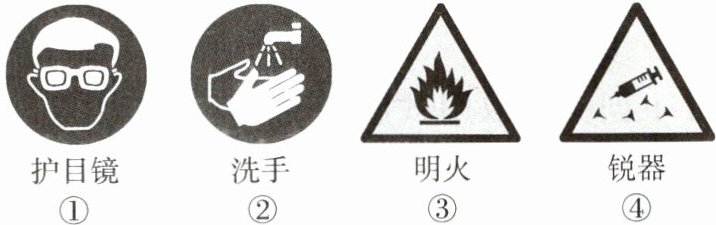 D.图标④:实验中会用到锋利物品,防止扎伤或割伤