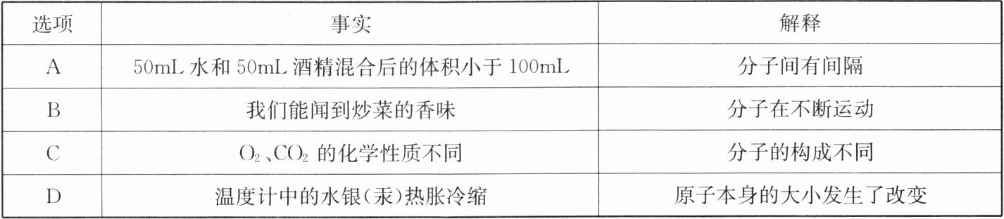 2. 善于用化学的眼光看世界,能够提高我们的科学素养。下列事实和相应的解释错误的是( )