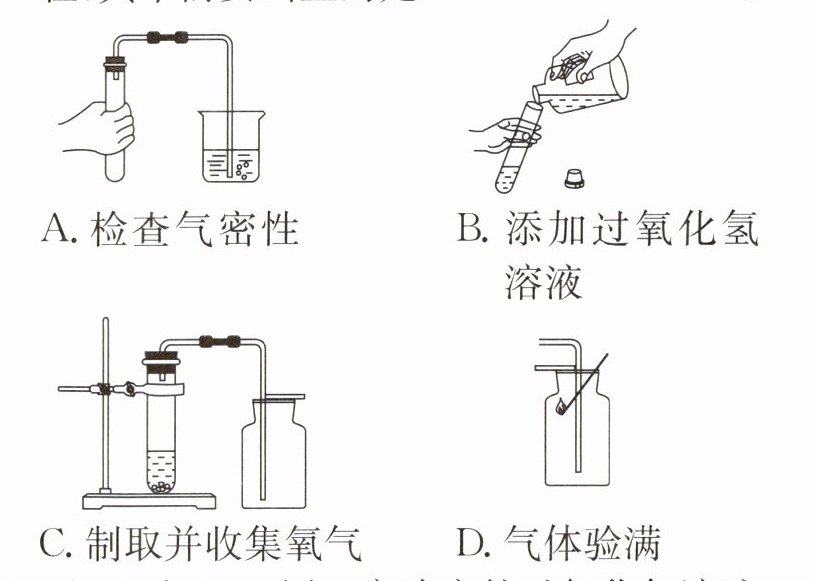 6. 如图是柯柯用过氧化氢溶液和二氧化锰完成氧气的制取、收集和验满的主要操作过程,其中需要纠正的是( )