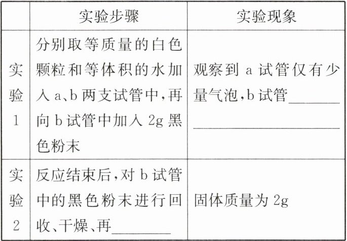 | 实验2 | 反应结束后,对b试管中的黑色粉末进行回收、干燥、再______ | 固体质量为2g |
