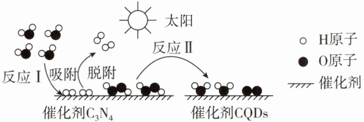 10. 一种新型复合光催化剂($C_{3}N_{4}/CQDs$),能利用太阳光分解水,原理如图所示。回答问题。