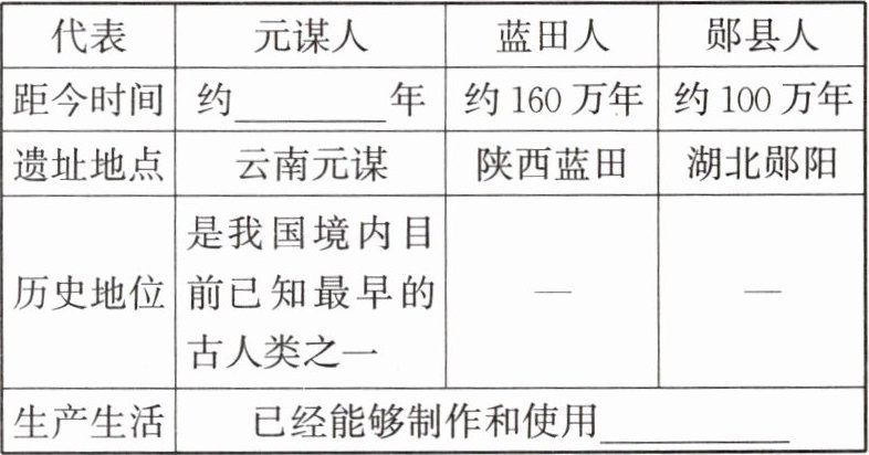 1.A 在云南元谋发现的元谋人是我国境内目前已知最早的古人类之一,距今约170万年。