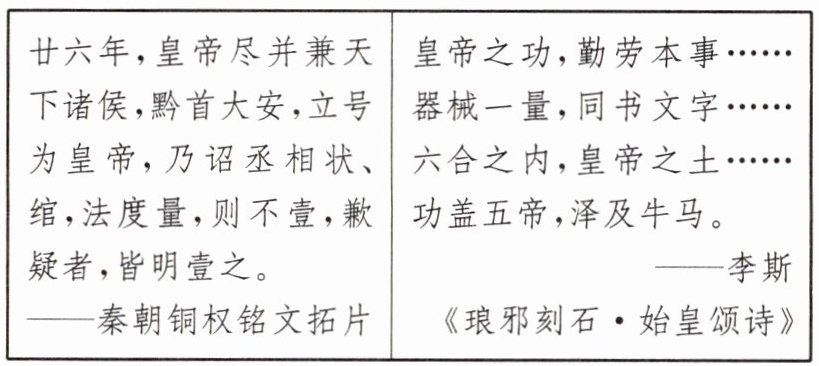 材料三 秦朝铜权上的铭文拓片和《琅邪刻石·始皇颂诗》节选