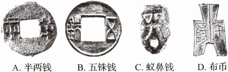 3.B 本题考查学生的识记能力。汉武帝改革币制,把铸币权收归中央,全国统一铸造五铢钱。