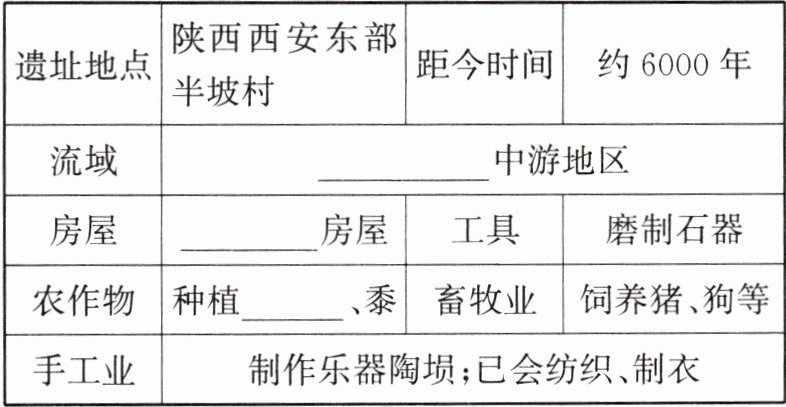 3. (2024·武汉洪山期中)在一处距今约6000年的黄河流域典型新石器时代聚落遗址中,可以看到粟的遗存和半地穴式房屋。由此推断,生活在此处遗址的原始人类是(