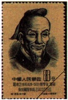 2. 我国曾发行《中国古代科学家》系列邮票,纪念祖冲之的邮票如图所示。我们纪念祖冲之是因为他(