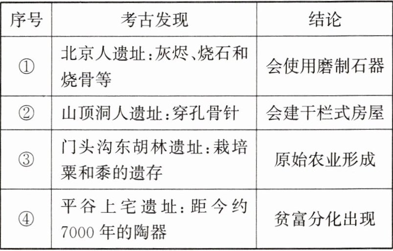 3.C 本题考查考古发现所蕴含的历史信息。A中“灰烬、烧石和烧骨”不能得出使用磨制石器,只能得出会使用火的结论,故A错误;山顶洞人并不居住在干栏式房屋,故B错误;D中“陶器”无法直接得出贫富分化的结论。故本题选C,粟和黍是原始农业代表性农作物。