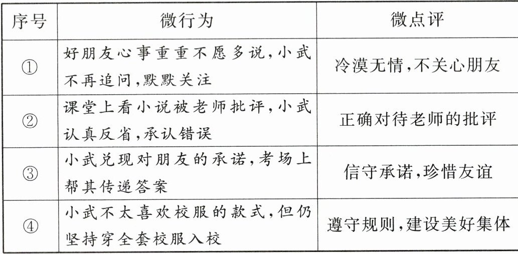 14.下表中对小武同学“微行为”的“微点评”,正确的是 (