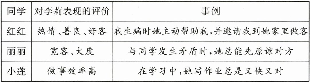 材料一 李莉为了更好地了解自己,征求了几位好朋友对自己的评价,结果见下表: