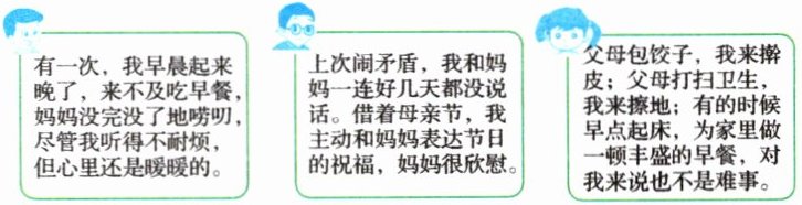 父母包饺子,我来擀皮;父母打扫卫生,我来擦地;有的时候早点起床,为家里做一顿丰盛的早餐,对我来说也不是难事。