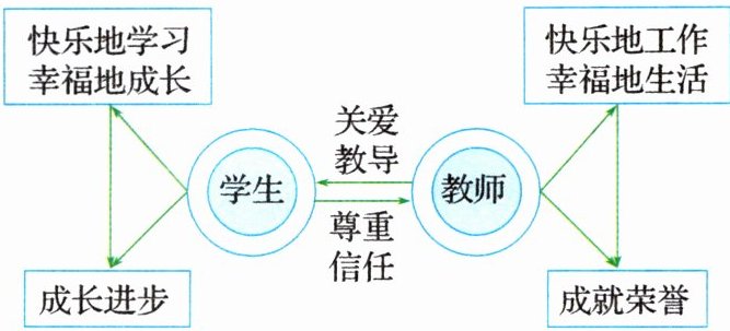 1.A 本题考查良好师生关系。图中学生尊重、信任教师,教师关爱、教导学生,帮助学生成长进步,这反映出学生乐于学习,老师寓教于乐,师生之间彼此尊重、相互关心、携手共进的亦师亦友的良好师生关系,A正确;B错误,排除;C错误,学生要注意场合、勿失分寸;D错误,竞争的说法不符合题意。