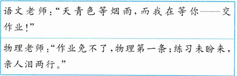 物理老师:“作业免不了,物理第一条;练习未盼来,亲人泪两行。”