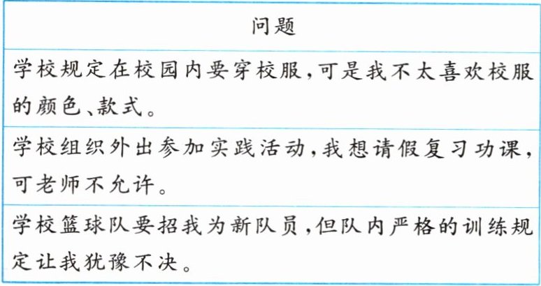 ◇学校规定在校园内要穿校服,可是校服的颜色、款式我不太喜欢。