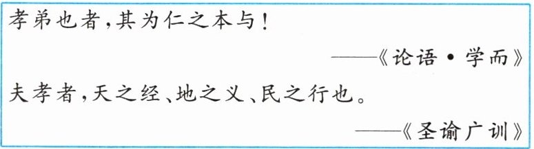 2.A 本题考查孝敬父母。结合所学知识,小闽在日常的表现中,能够体现“孝”的是主动为爷爷朗读报纸,常陪外公和外婆一起聊天,所以①②符合题意;③④错误,都是不能理解和体会父母辛劳的表现,不符合题意。