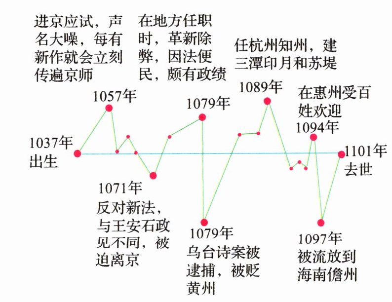 (2)生命可以永恒吗?对于这个问题可以有两种回答,一种是不可以,从苏东坡的一生可以清晰地看到,他于1101年去世,生命是有限的,这是从自然生命的角度来说的。另一种是可以,这是从精神生命的角度来说的,生命可以传承,从苏东坡的经历中可以看到,他在书法上有一定造诣,开创了宋代“尚意”书风,这是留给后人的精神财富,需要我们一代又一代中华儿女不断传承、弘扬。