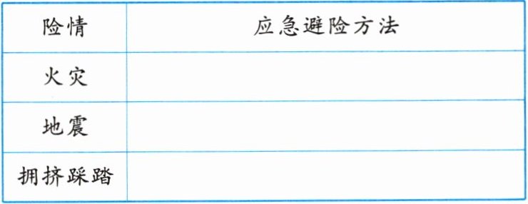 (1)在生活中,如果遇到以下危险情况,我们应该如何有效应急避险?请对应填写避险方法。(6分)