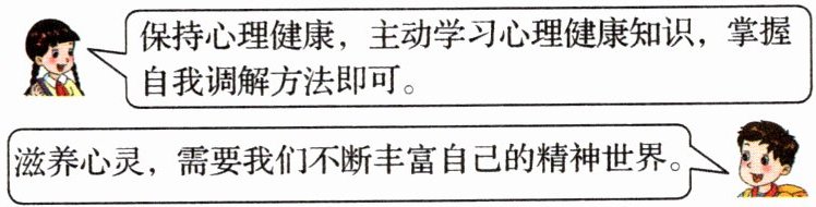 (1)女生观点错误。①保持心理健康,需要我们在日常生活中主动学习心理健康知识,掌握自我调节的方法,必要时积极寻求专业帮助。②除此之外,保持心理健康还需要我们磨炼意志,增强生命韧性。我们要对自己的行为和目标有清醒的认识,以顽强不屈的精神、百折不挠的毅力,勇往直前,战胜挫折和困难。