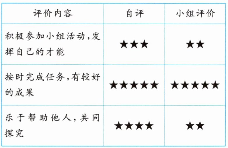 8. 某班老师组织大家以小组为单位进行实践活动成果分享,下面是参与活动后丽丽的评价量表部分内容。