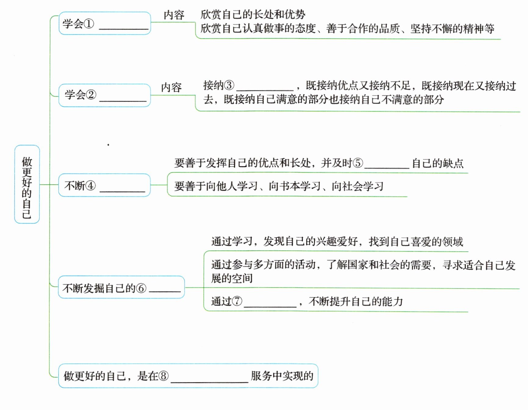 ⑤主动改正 ⑥潜能 ⑦与他人合作 ⑧为他人、为社会