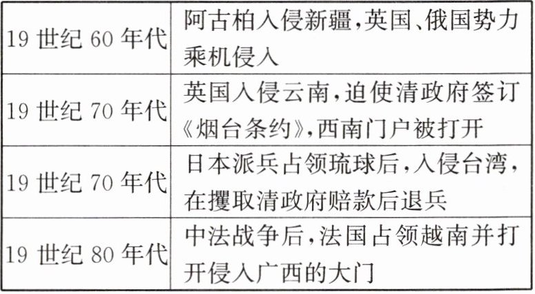 )| 19 世纪 60 年代 | 阿古柏入侵新疆,英国、俄国势力乘机侵入 |