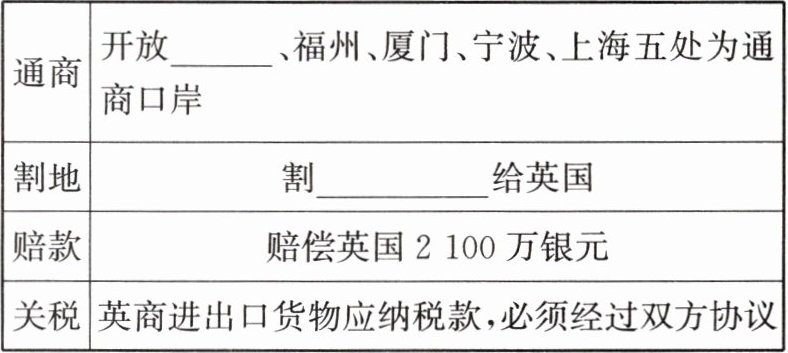、福州、厦门、宁波、上海五处为通商口岸||割地|割