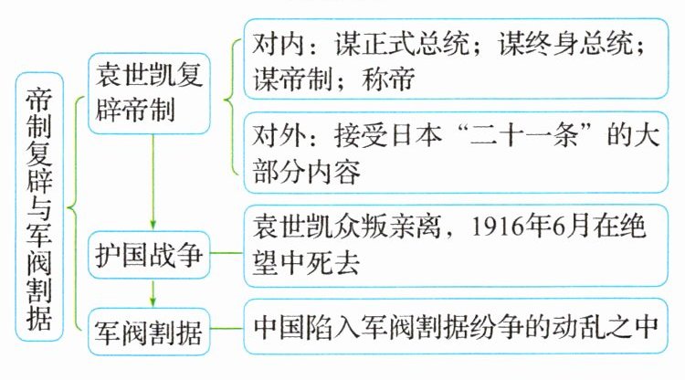 纷争的动乱之中。【易错字】讨袁檄文、蔡锷、冯国璋、曹锟、军阀割据