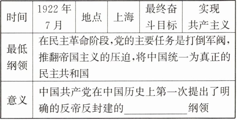 |时间|1922年7月|地点|上海|最终奋斗目标|实现共产主义|