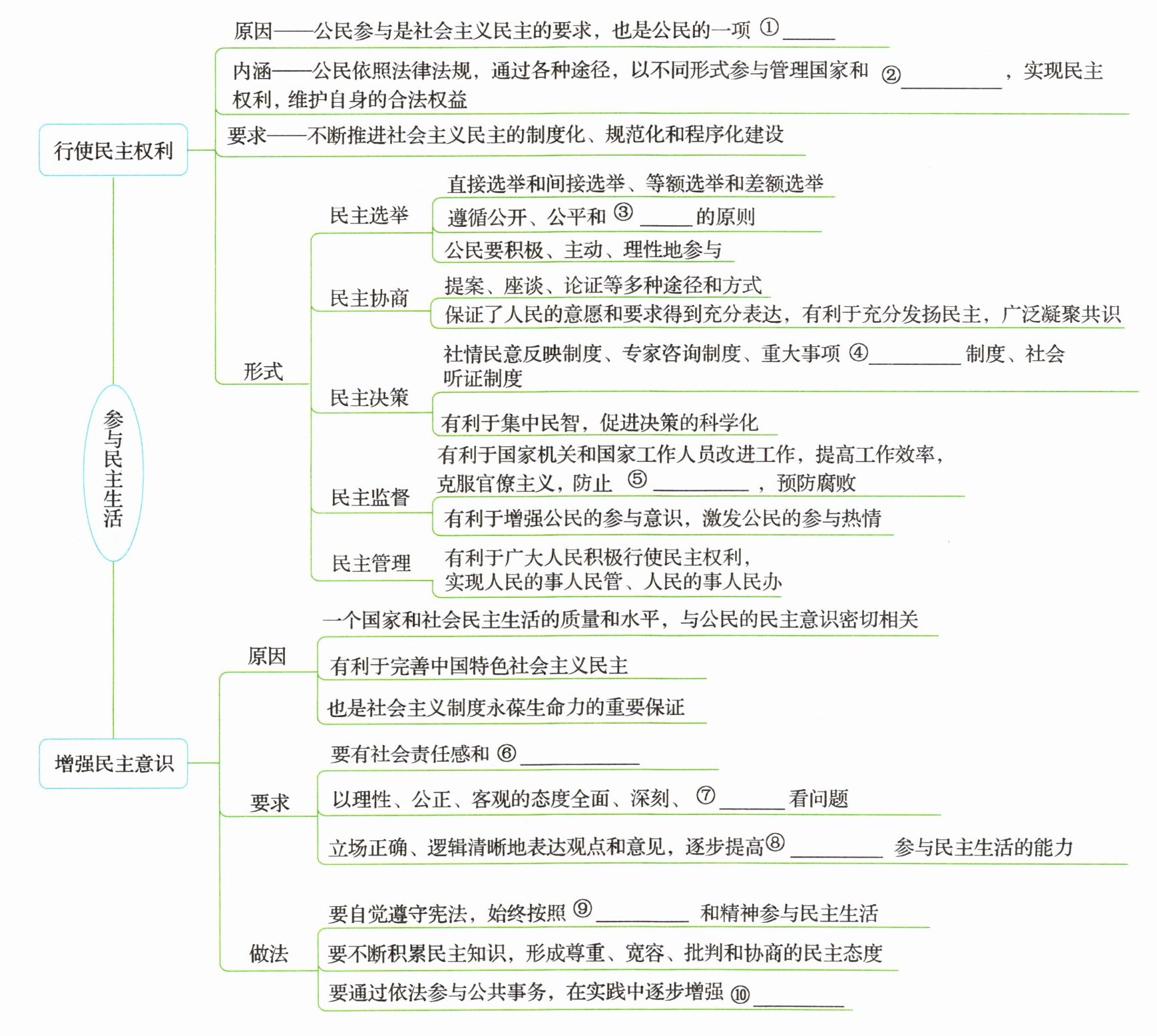 ⑤滥用权力 ⑥主人翁意识 ⑦辩证地 ⑧依法有序