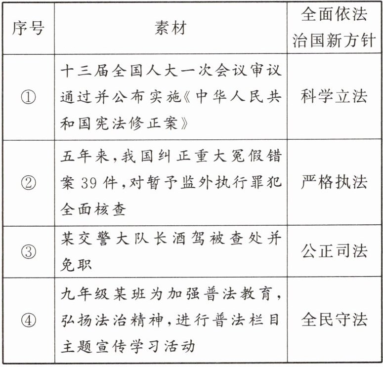 体现了严格执法,③对应错误;学生进行法治宣传学习,