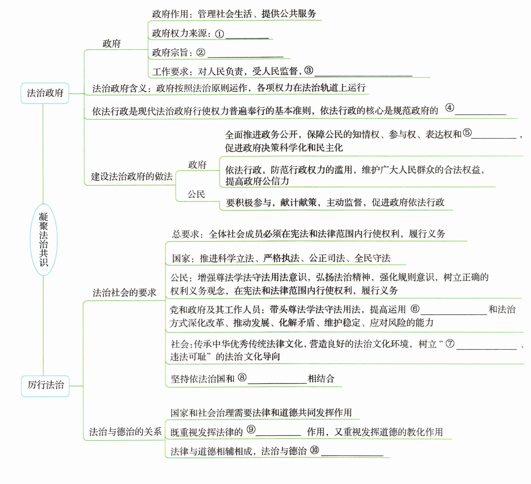 ⑤监督权 ⑥法治思维 ⑦守法光荣 ⑧以德治国