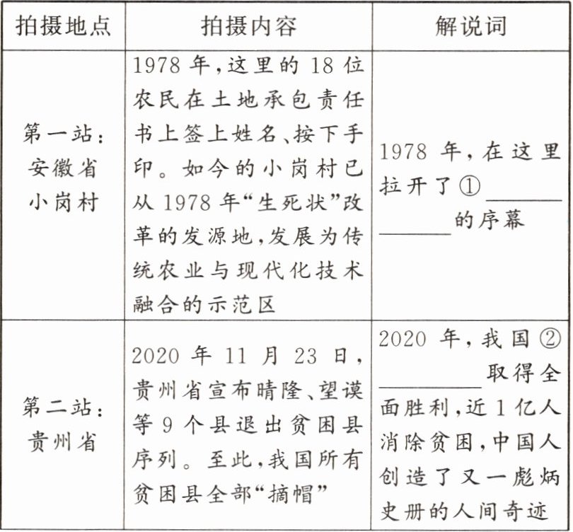 (2)①改革开放是决定当代中国命运的关键抉择。②坚持改革开放,是我们的强国之路。③改革开放是决定当代中国命运的关键一招,也是决定实现中华民族伟大复兴的关键一招。④中国共产党不忘初心、牢记使命,全心全意为人民服务。(任答其中三点即可,每点2分)