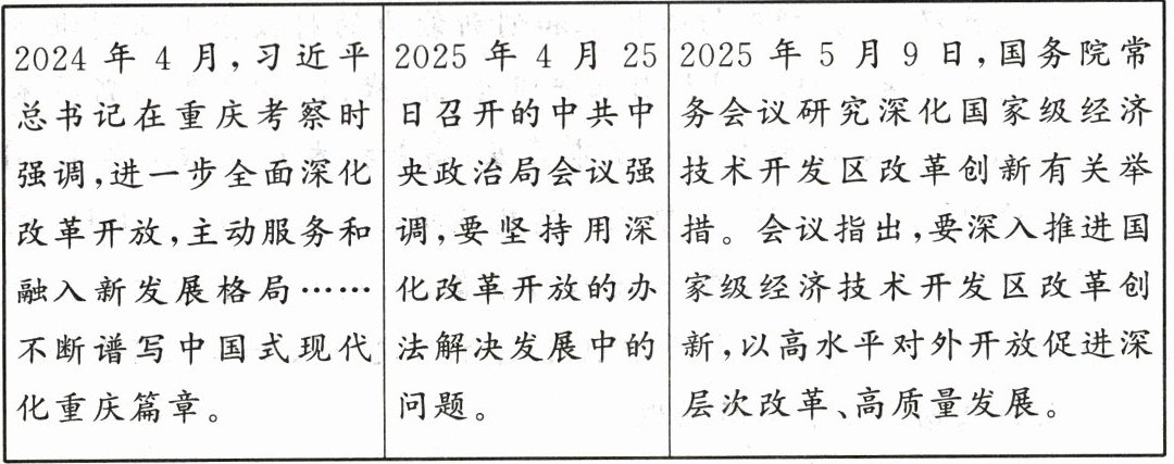 1. 2025年是改革开放47周年。40多年来我们交出了一份让人民满意的答卷。1978年至2024年,国内生产总值由3679亿元提升至超过134万亿元,进出口总额由355亿元跃升至超43万亿元。这些数据充分表明 ()